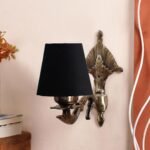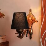Antique Gold Wall Lamp for Office/Home/Gifting with Cotton conical Black Shade(7×5.5×9.25) Inches -2