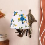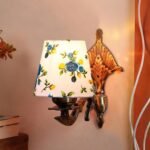 Antique Gold Wall Lamp for Office/Home/Gifting with Cotton conical Printed Shade(7×5.5×9.25) Inches -14