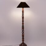 Off White Cotton Cylindrical Drum Designer Fashionable Wooden Carving Floor Lamp for Home Decor (Off White, Medium)