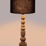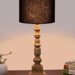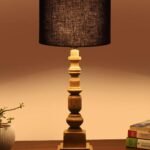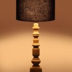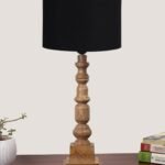 Black Cotton Shade Table Lamp with Wooden Natural Base – Height 21.25 Inches/Without Bulb | for Living Room, Bedroom Decoration, Home Decor, Gifting | Decorative Bedside & Desk Table Lamp
