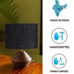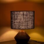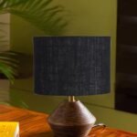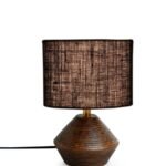 Black Jute Table lamp with Wood Natural Base (7×12 inches)