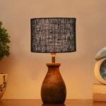 Black Jute Table lamp with Wood Natural Base (7×13 inches)-18