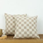 Checkerboard Set Of 2 Cushion Covers – (Beige) – 40x40cm