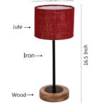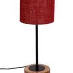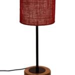 Drum Maroon Jute Shade Table Lamp with Wood Base