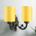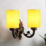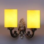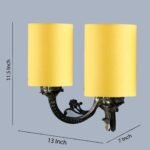 Dual Antique Gold Wall Lamp for Office/Home/Gifting with Cotton Yellow Shade(7x13x11.5) Inches -170