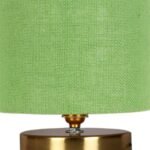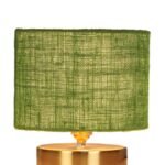 Green Jute Table Lamp with Gold Wood Base