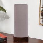 Grey Cotton Table lamp Office/Home/Gifting with Wood Brown Base (5x5x11) Inches -Grey