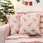 • What’s inside? A set of 2 Jolly Reindeer cushions and 1 Holly cushion made of 100% cotton with gold detailings to make them Christmas