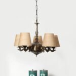 Lights Beige Jute conical Shade with Antique Golden Chandelier