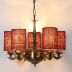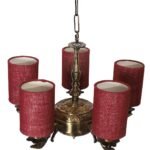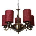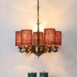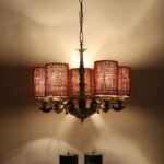 Lights Maroon Jute Round Shade with Antique Golden Chandelier