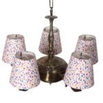 Lights Printed conical Cotton Shade with Antique Golden Chandelier -C