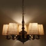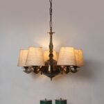 Lights White Jute conical Shade with Antique Golden Chandelier