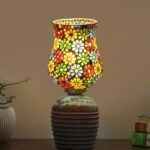 Multicolor Table Lamp | Artistic Mosaic Glass with Sturdy Wood Base | Decorative Ambient Light for Home D�cor | Perfect Blend of Modern & Traditional Style – Model DJC04