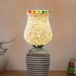 Enhance Your HomeS Ambiance With The Devansh Multicolor Table Lamp A Perfect Blend Of Style, Functionality, And Craftsmanship. This Elegant Lamp Features A Unique Combination Of Conical, Mosaic, And Milky Glass Designs, Creating A Stunning Visual Appeal That Complements Any Decor Style. The LampS Base And Structure Are Crafted From High-Quality Wood And Glass, Ensuring Durability While Adding A Sophisticated Touch. Its Multicolor Palette Brings Vibrancy And Warmth To Any Space, Making It A Standout Piece In Living Rooms, Bedrooms, Offices, And More. With Its Soft, Ambient Lighting, This Table Lamp Sets A Calming Mood, Perfect For Winding Down After A Long Day Or Adding A Cozy Feel To Social Gatherings. The Conical Shape Makes It A Stylish Yet Space-Efficient Choice For Bedside Tables, Study Desks, Or Decorative Corners. Easy To Use And Compatible With Standard Bulbs, This Lamp Offers Both Convenience And Elegance. Whether YouRe Redecorating Your Home Or Looking For A Thoughtful Gift, The Devansh Table Lamp Is A Perfect Pick For Those Who Appreciate Artistic And Functional Design.