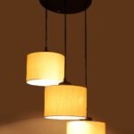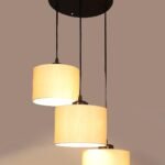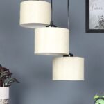 Off-White Cotton Round Drum Cluster Hanging Lamp