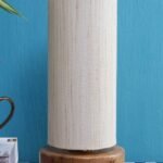 Off-White Cotton Shade with Round Wood Base
