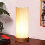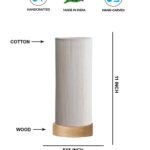 Off-White Cotton Table lamp Office/Home/Gifting with Wood Natural Base (5x5x11) Inches -Off-White