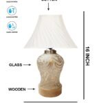 Off-White Cross Pleated Cotton Shade Lamp with Wood & Mosaic Glass Base for Decoration/Office/Home/Gifting/Study for Office/Home/Gifting -(12x12x16) Inches -O