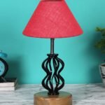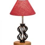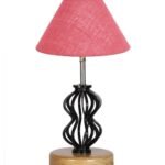 Pink Jute Table lamp with Wood & Iron Base(77)