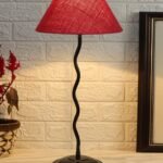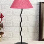 Pink Jute Zig zag Table lamp with Iron Base (AE09)