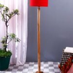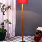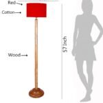 Red Cotton Drum Shade with Wood Floor lamp for Decoration/Office/Home/Gifting/Study .-(12x12x57 Inches)