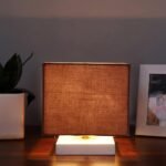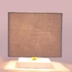 Square Grey Cotton Table lamp with White Wood Base -62