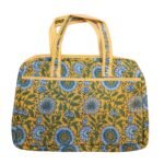 Bright, beautiful & thoughtfully designed — handcrafted quilted laptop bag blends everyday functionality with timeless charm. Featuring vibrant floral prints on a rich mustard base, it adds colour and character to your work or travel routine.