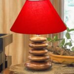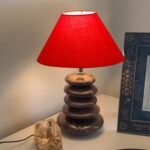 Upscale Table Lamp with Glass & Wooden Base | Elegant Night Light for Home & Room Decoration | Bedroom & Living Room Lighting | Multiple Designs – (Red)