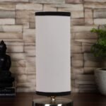 White & Black Cotton Table lamp with Steel Base -7