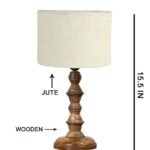 White Jute Shade Table Lamp with Wooden Base (Height 15.5 Inches, Without Bulb) | Elegant Bedside & Desk Lamp for Living Room, Bedroom, Home Decor, Office & Gift | Decorative Lighting Lamp
