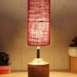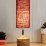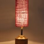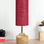 Wood Table lamp with Maroon Jute Shade(32)