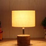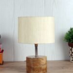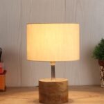 Wood Table lamp with Off-White Cotton Shade
