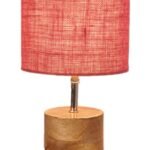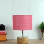 Wood Table lamp with Pink Jute Shade