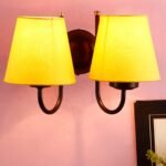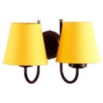 Yellow conical Cotton Double Wall Mounted lamp with Black Base