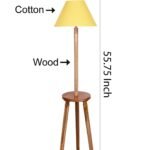 Yellow Cotton Conical Wooden Floor Lamp -24-(14×55.75inches) -Tripod Natural