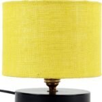 Yellow Jute Shade Lamp with Black Wood Base for Decoration/Office/Home/Gifting/Study for Office/Home/Gifting -(7x7x7) Inches –